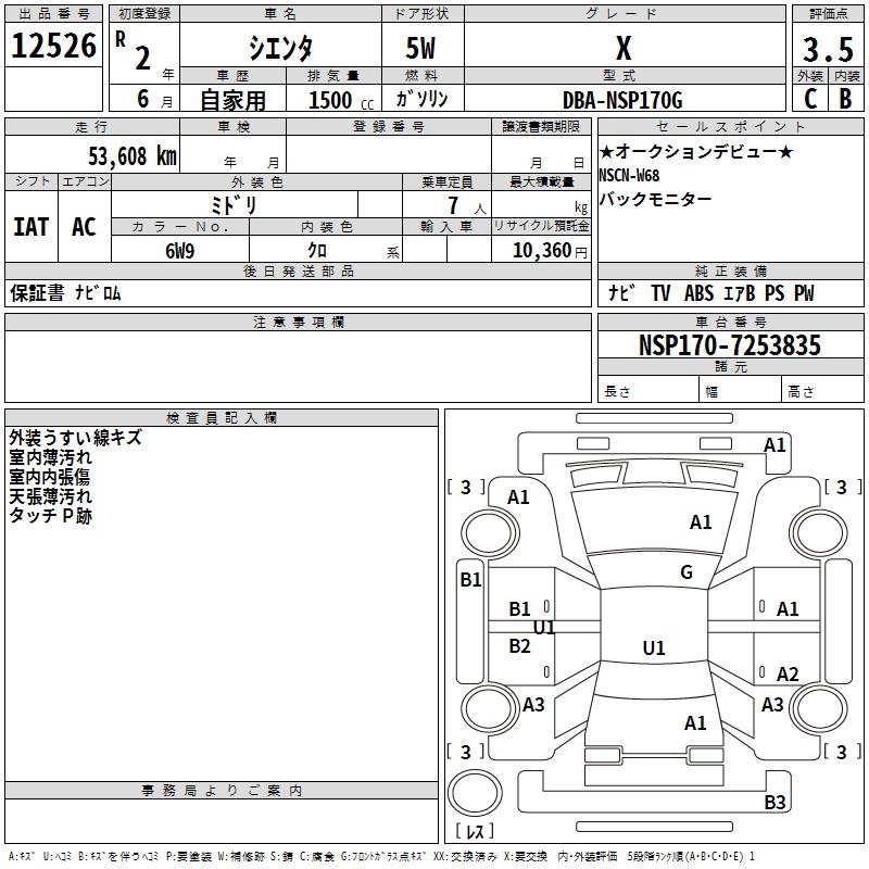 TOYOTA SIENTA - лот 12526