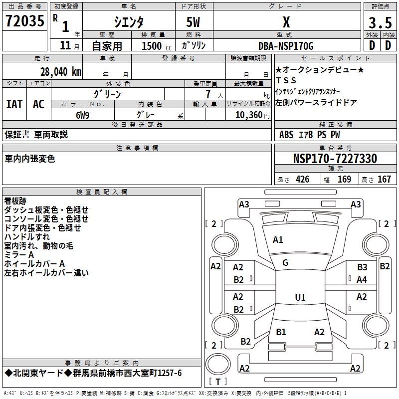 TOYOTA SIENTA - лот 72035