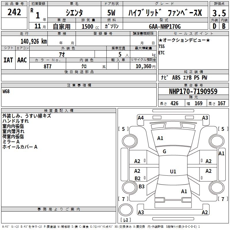TOYOTA SIENTA - лот 242