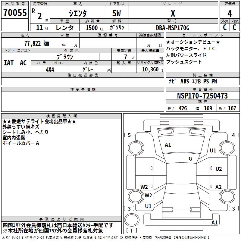 TOYOTA SIENTA - лот 70055
