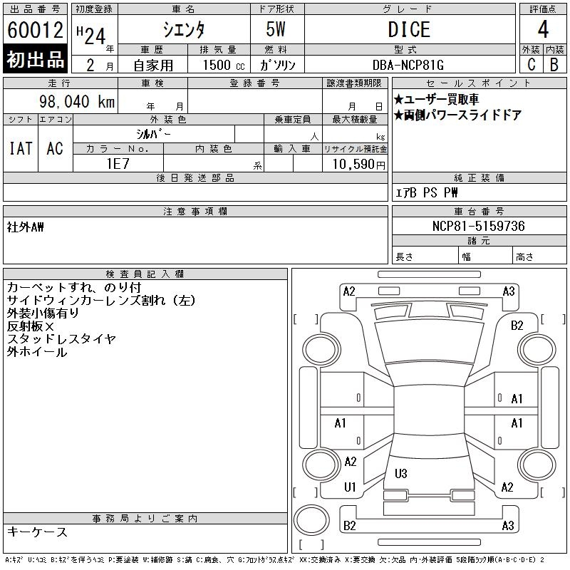 TOYOTA SIENTA - лот 60012