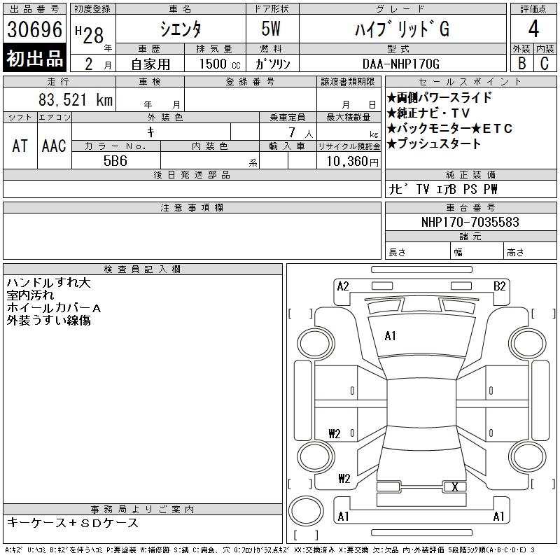 TOYOTA SIENTA - лот 30696