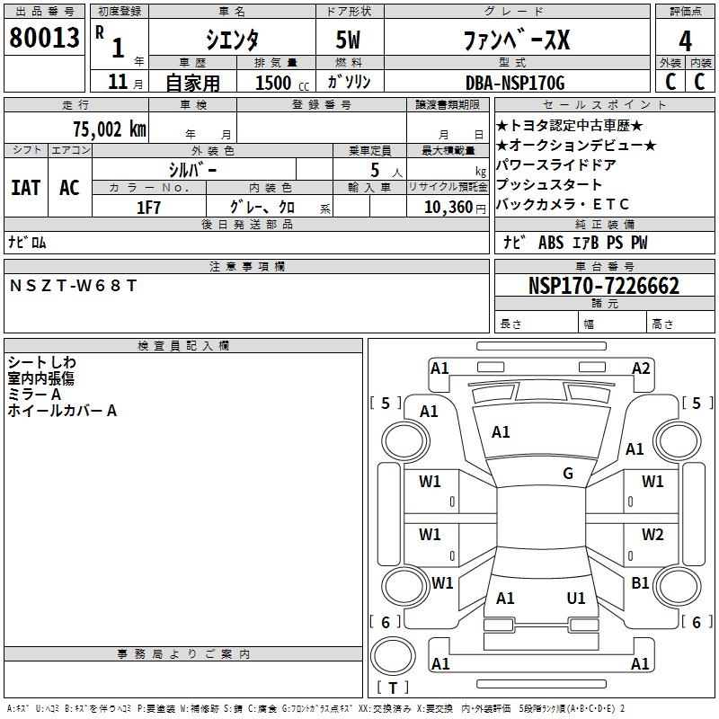 TOYOTA SIENTA - лот 80013