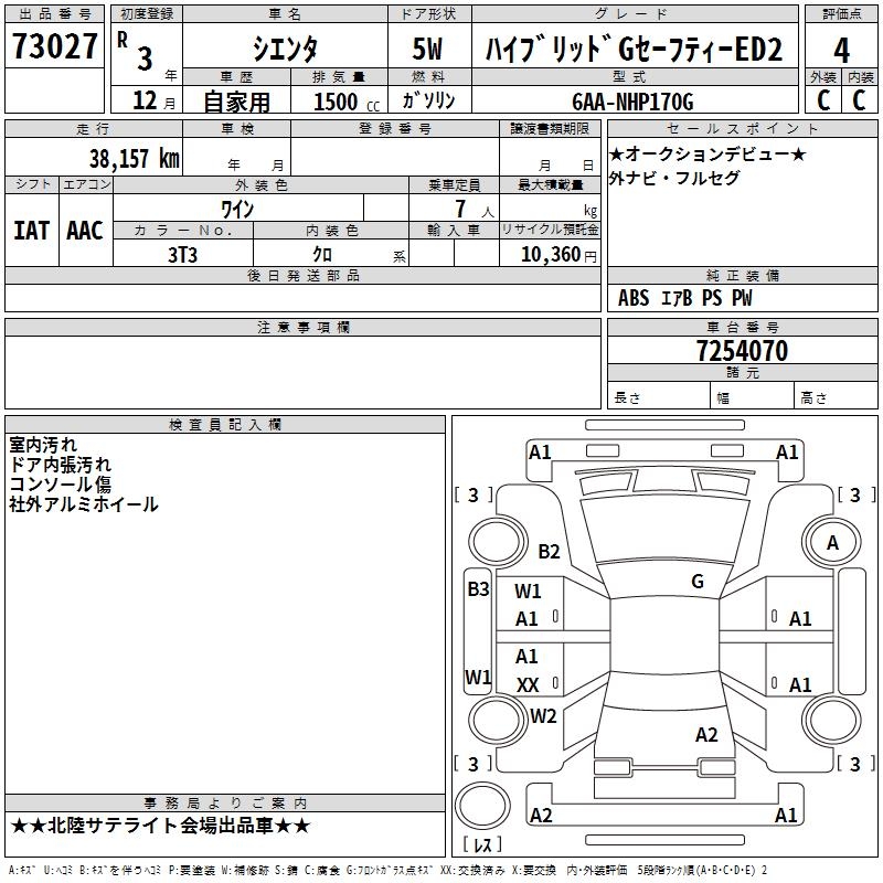 TOYOTA SIENTA - лот 73027