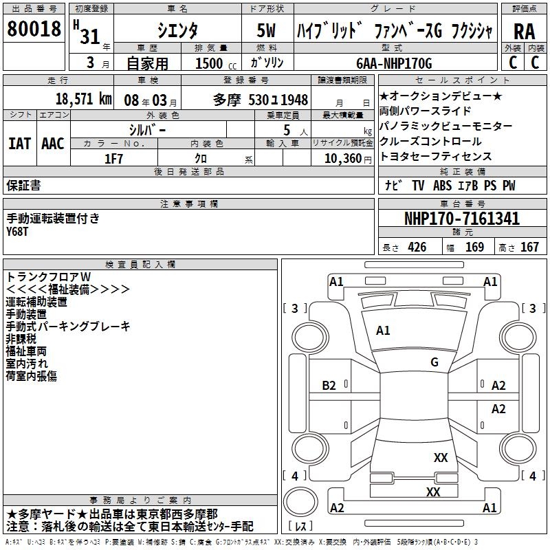 TOYOTA SIENTA - лот 80018