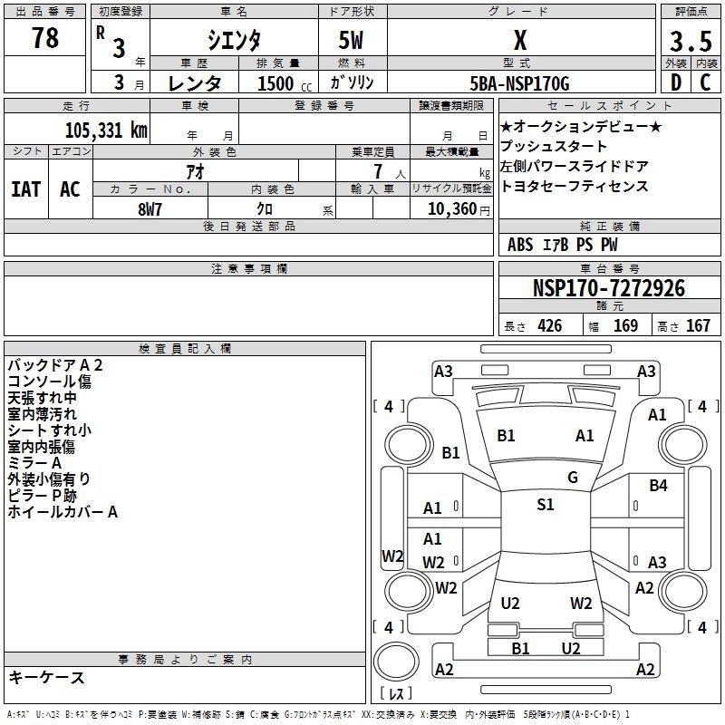 TOYOTA SIENTA - лот 78