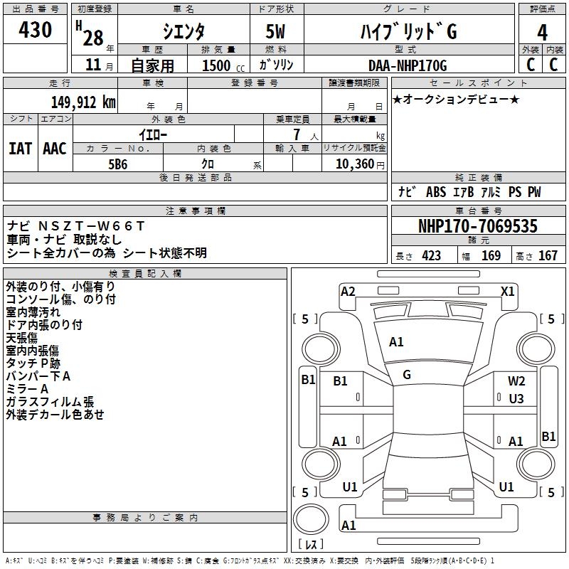 TOYOTA SIENTA - лот 430