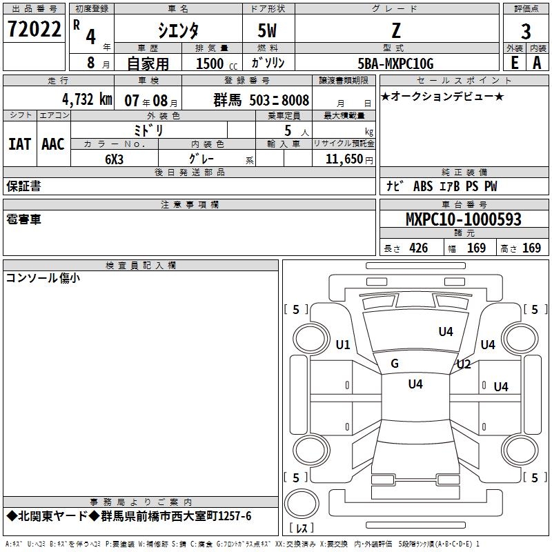 TOYOTA SIENTA - лот 72022