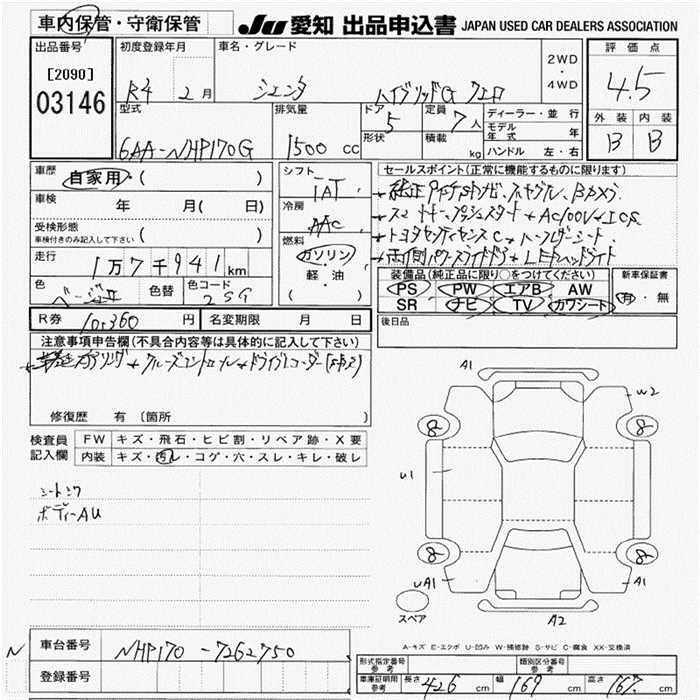 TOYOTA SIENTA - лот 3146
