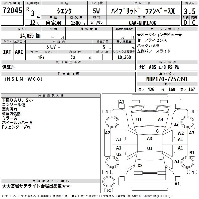TOYOTA SIENTA - лот 72045