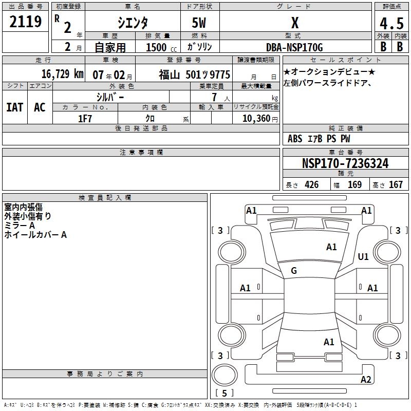 TOYOTA SIENTA - лот 2119