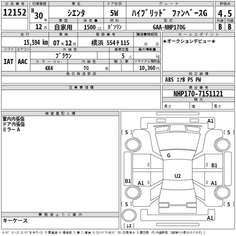 TOYOTA SIENTA - лот 12152