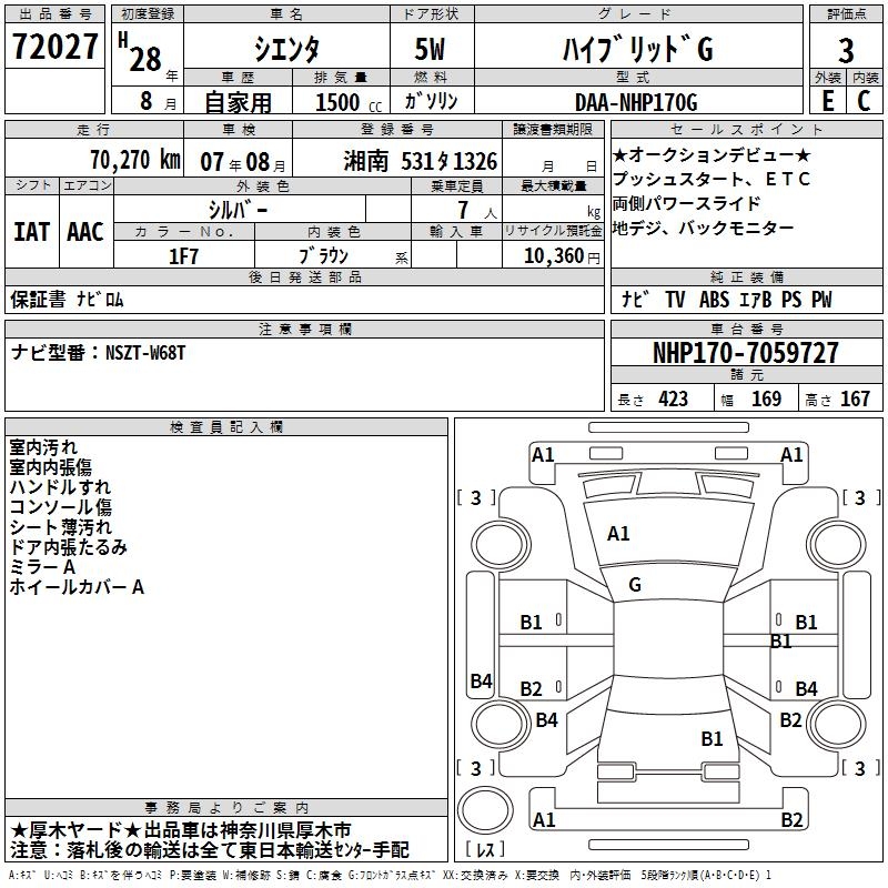 TOYOTA SIENTA - лот 72027