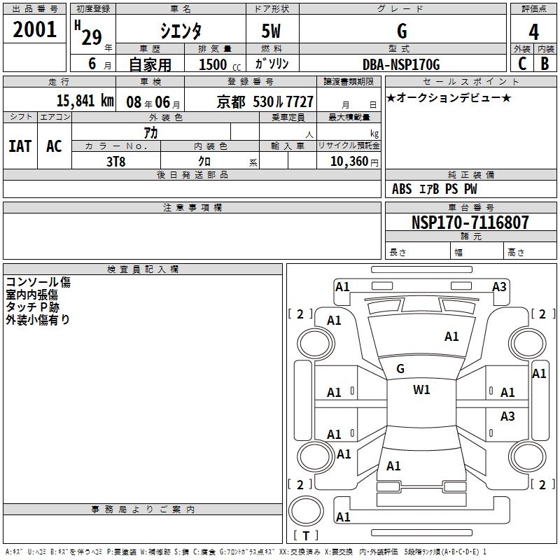 TOYOTA SIENTA - лот 2001