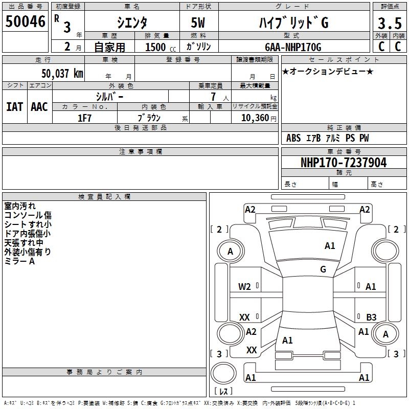 TOYOTA SIENTA - лот 50046