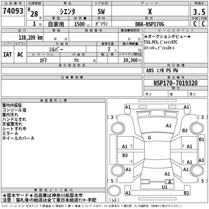 TOYOTA SIENTA - лот 74093
