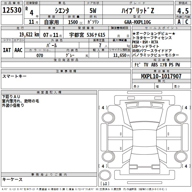 TOYOTA SIENTA - лот 12530