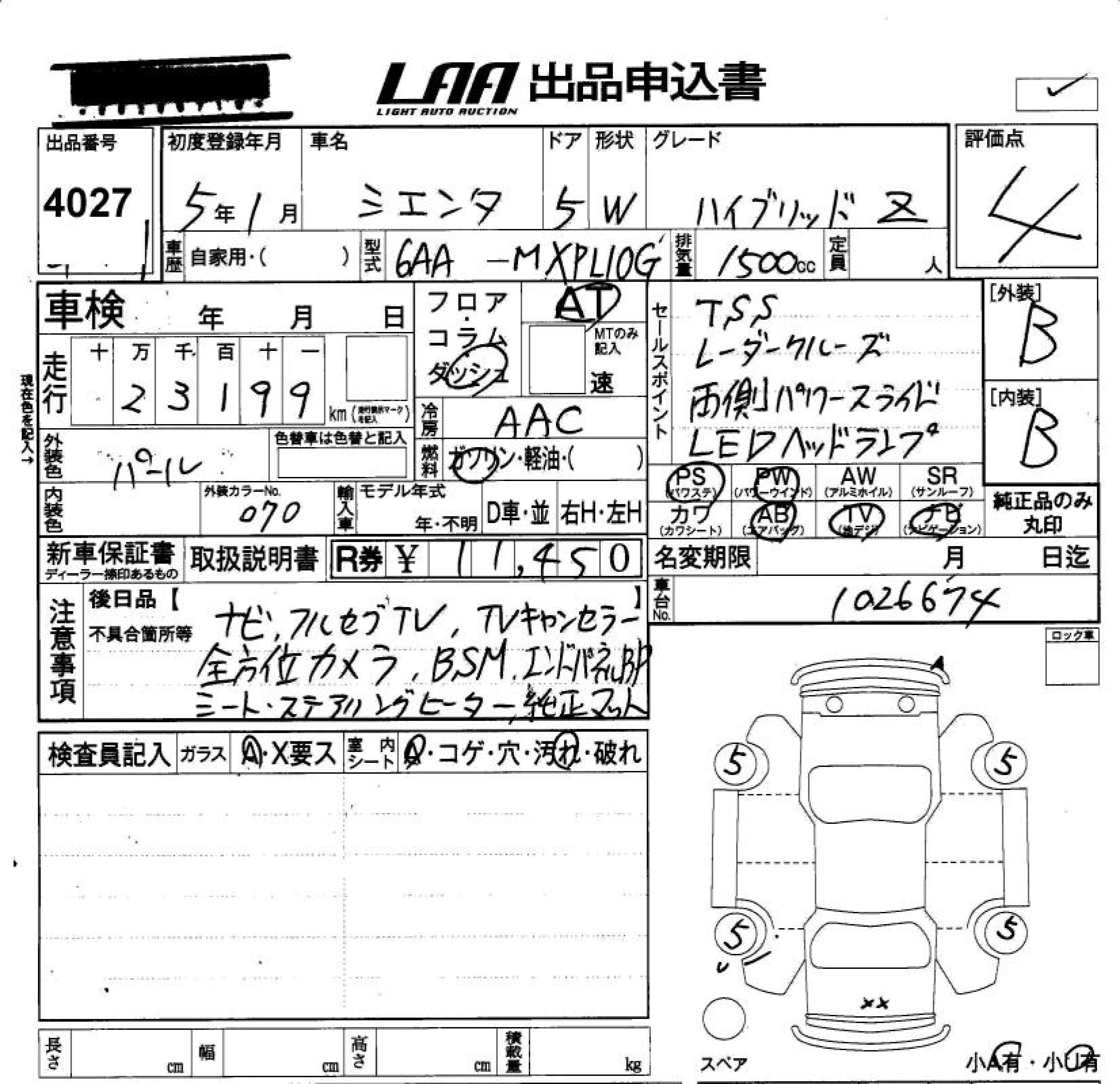 TOYOTA SIENTA - лот 4027