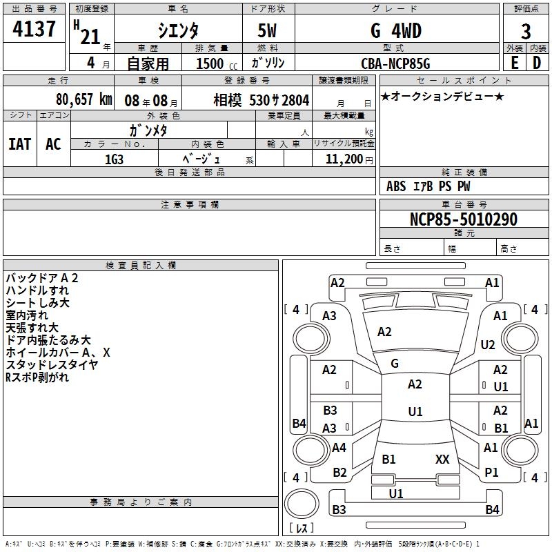 TOYOTA SIENTA - лот 4137