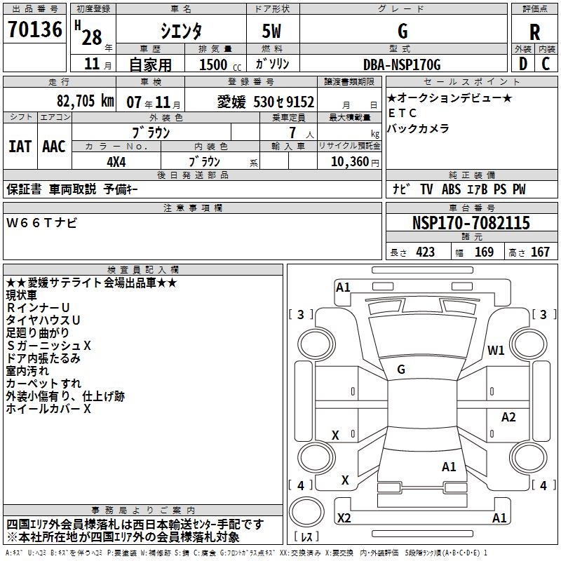 TOYOTA SIENTA - лот 70136