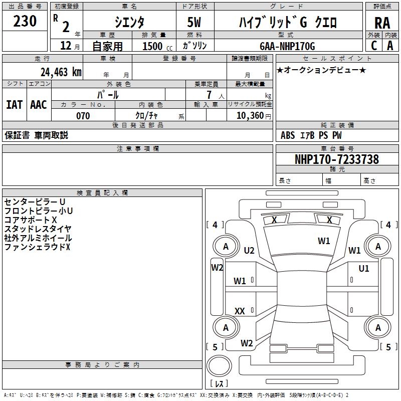 TOYOTA SIENTA - лот 230