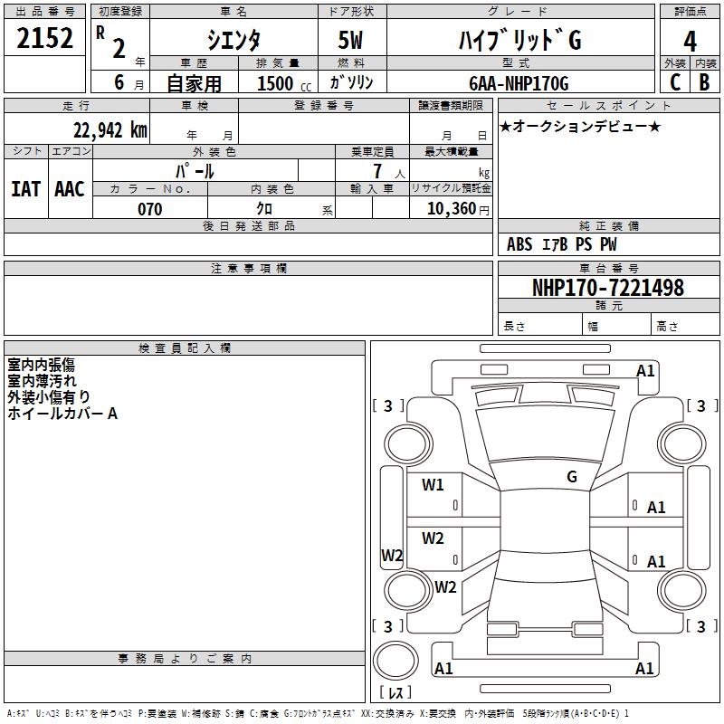 TOYOTA SIENTA - лот 2152