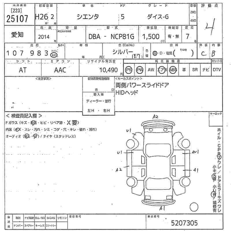 TOYOTA SIENTA - лот 25107