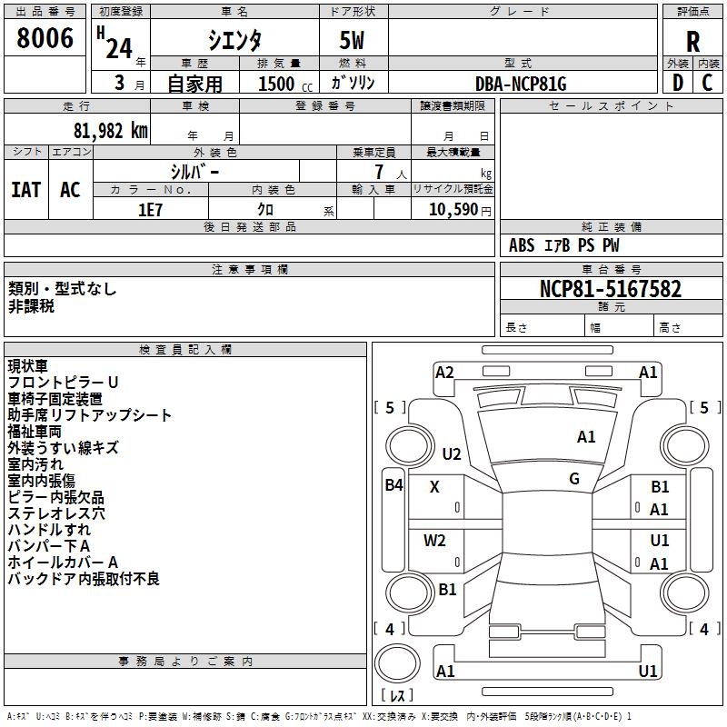 TOYOTA SIENTA - лот 8006