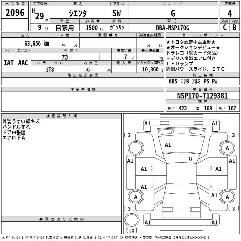TOYOTA SIENTA - лот 2096