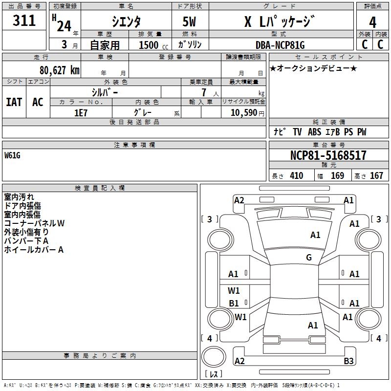 TOYOTA SIENTA - лот 311