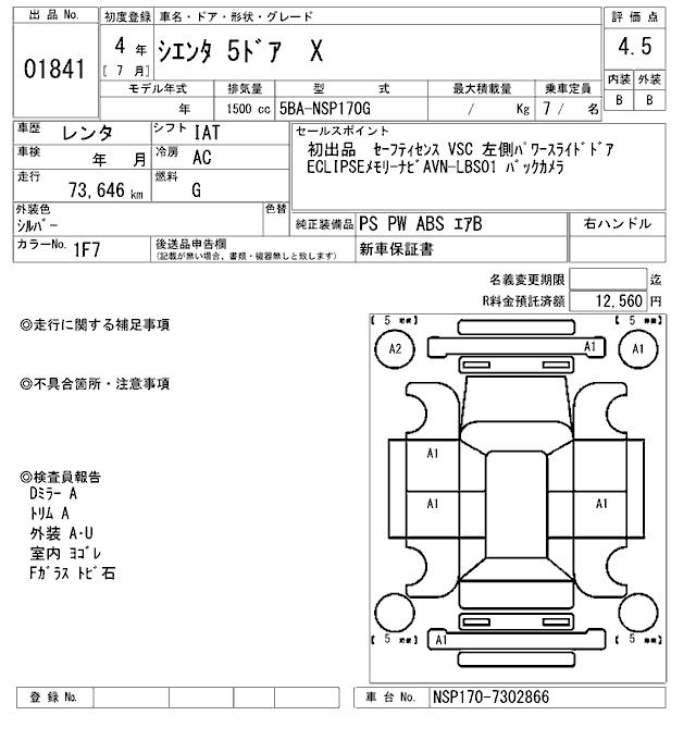 TOYOTA SIENTA - лот 1841