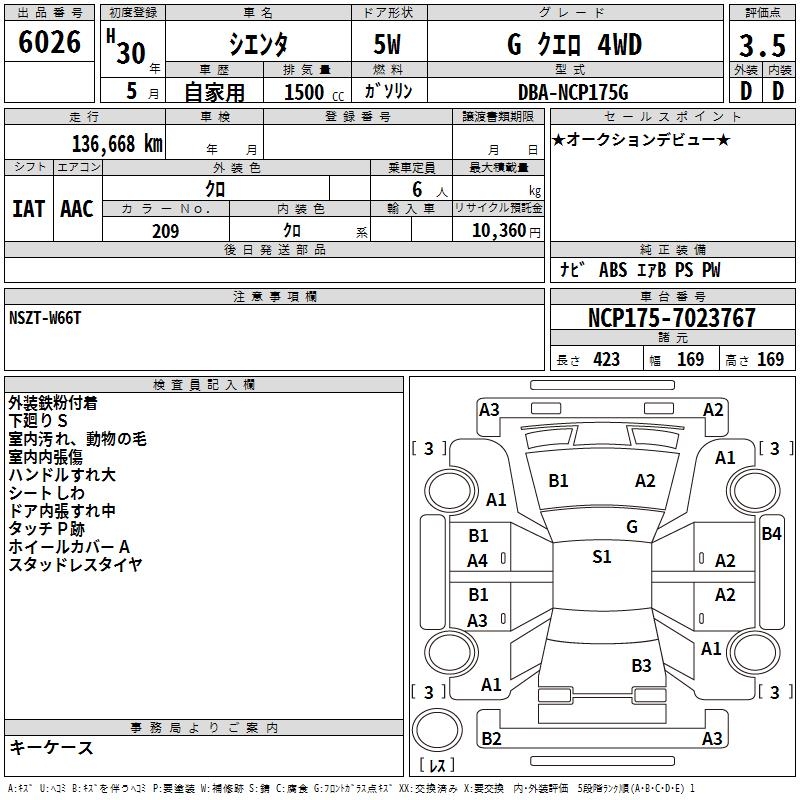 TOYOTA SIENTA - лот 6026