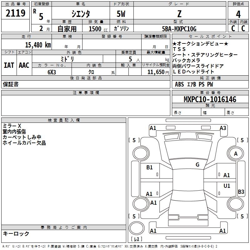 TOYOTA SIENTA - лот 2119