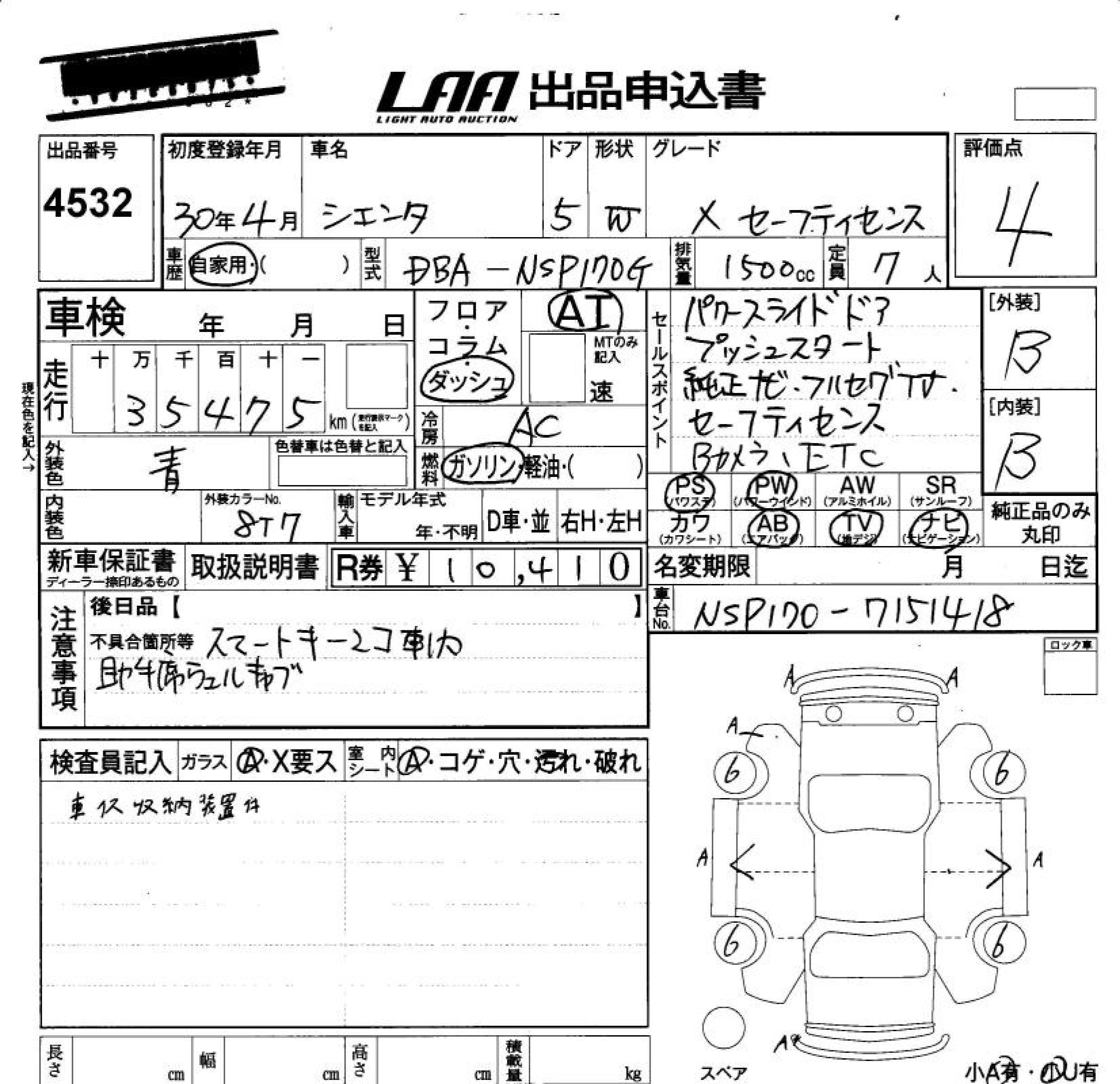 TOYOTA SIENTA - лот 4532