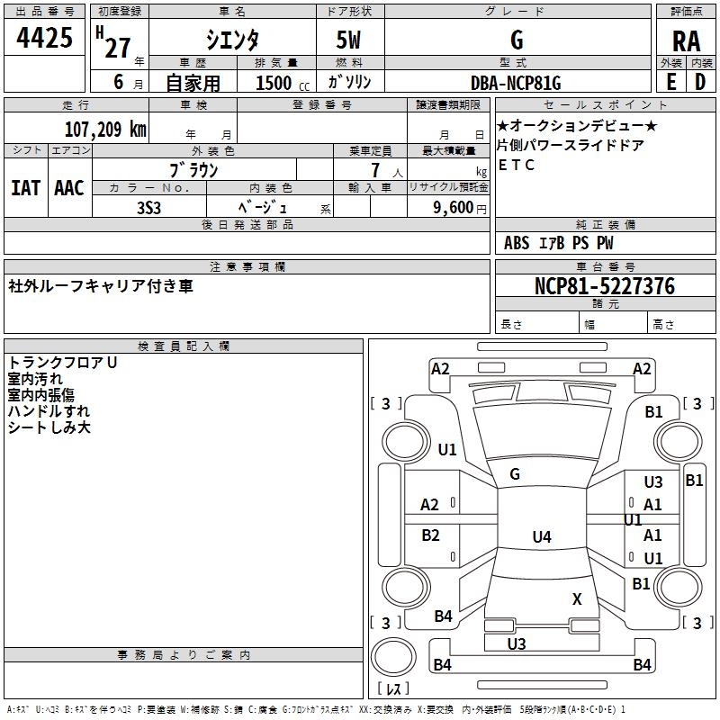 TOYOTA SIENTA - лот 4425