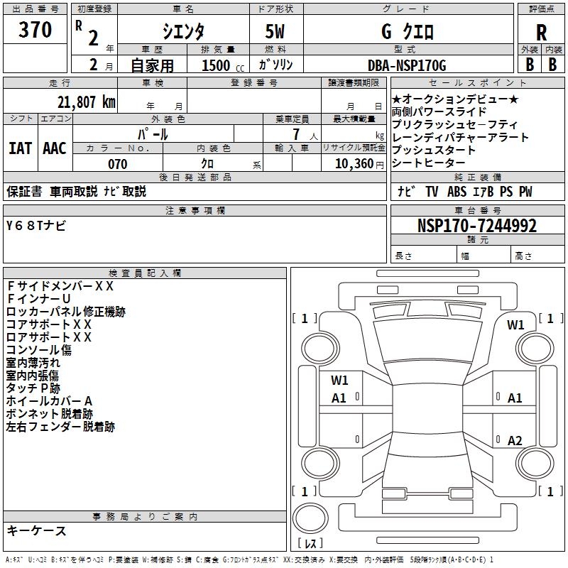TOYOTA SIENTA - лот 370