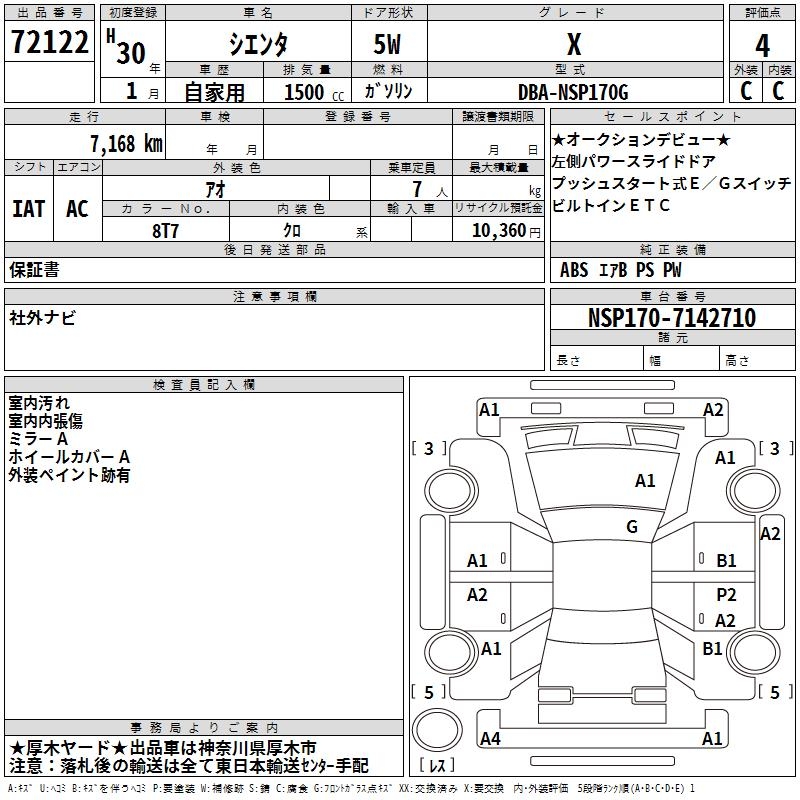 TOYOTA SIENTA - лот 72122