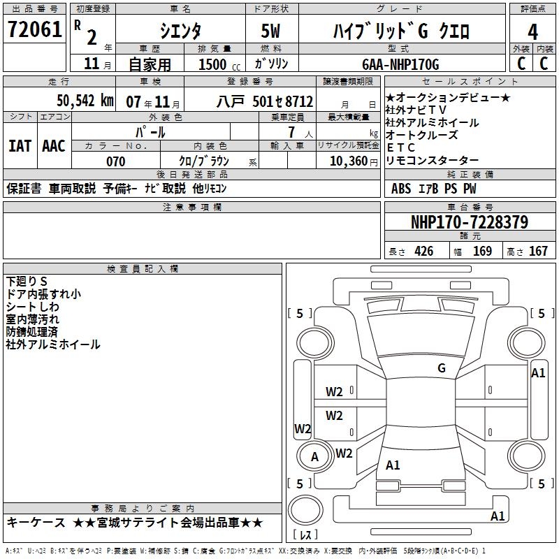 TOYOTA SIENTA - лот 72061