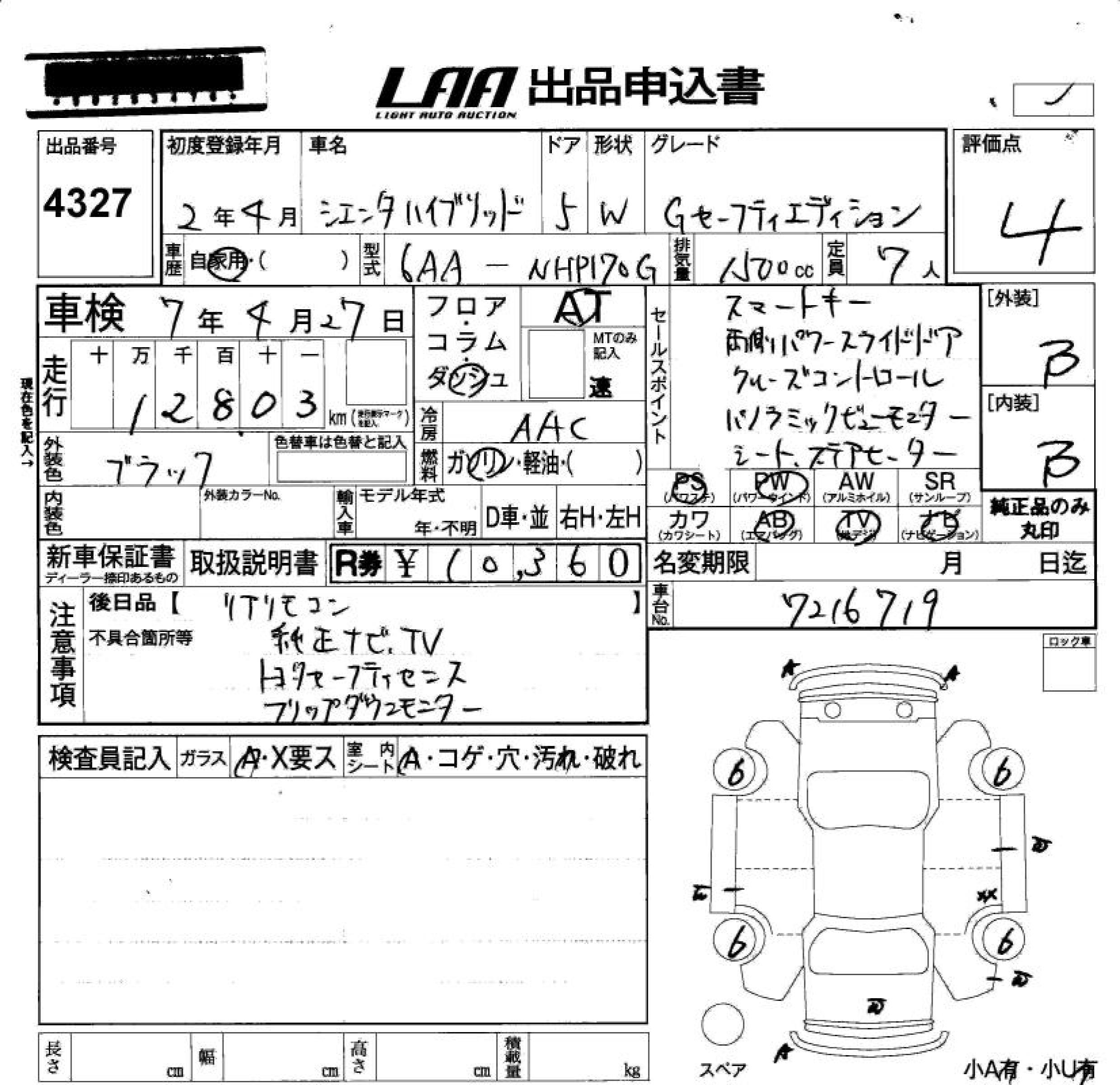 TOYOTA SIENTA - лот 4327