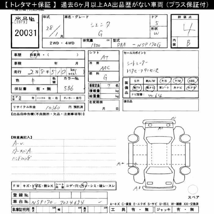 TOYOTA SIENTA - лот 20031