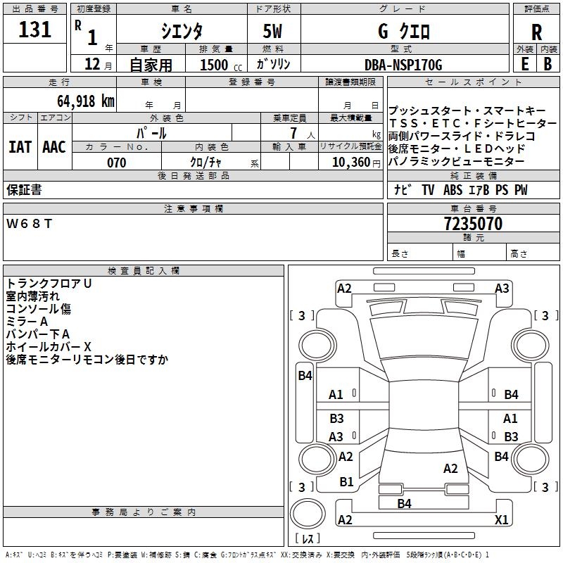 TOYOTA SIENTA - лот 131
