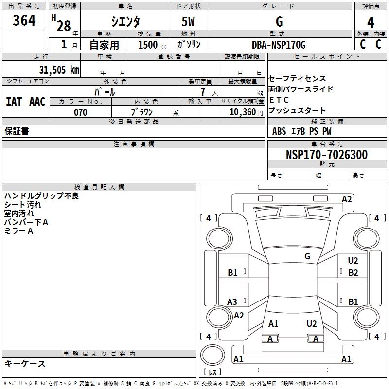 TOYOTA SIENTA - лот 364