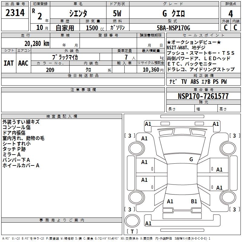 TOYOTA SIENTA - лот 2314