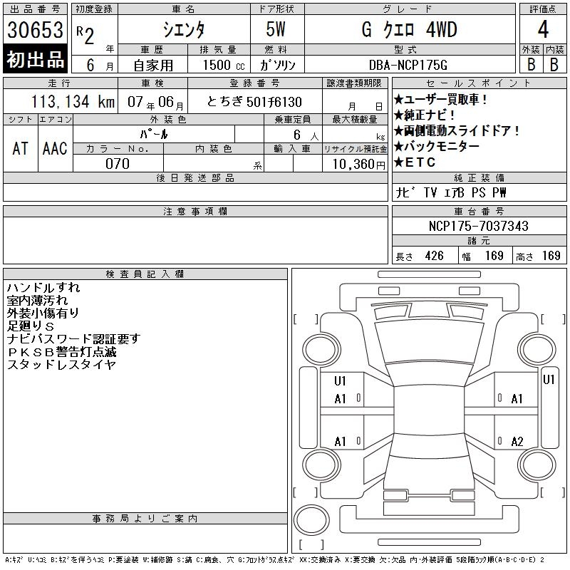 TOYOTA SIENTA - лот 30653