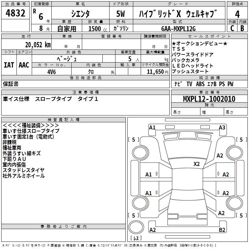TOYOTA SIENTA - лот 4832