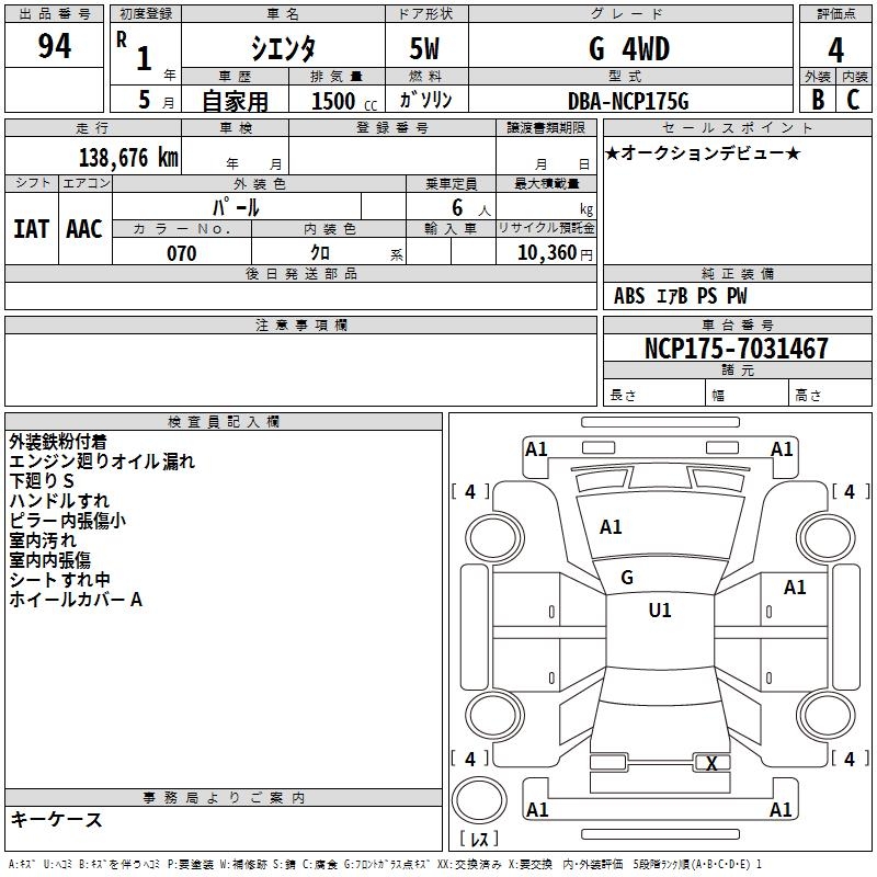 TOYOTA SIENTA - лот 94