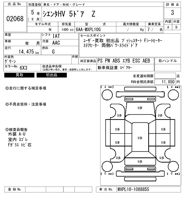 TOYOTA SIENTA - лот 2068