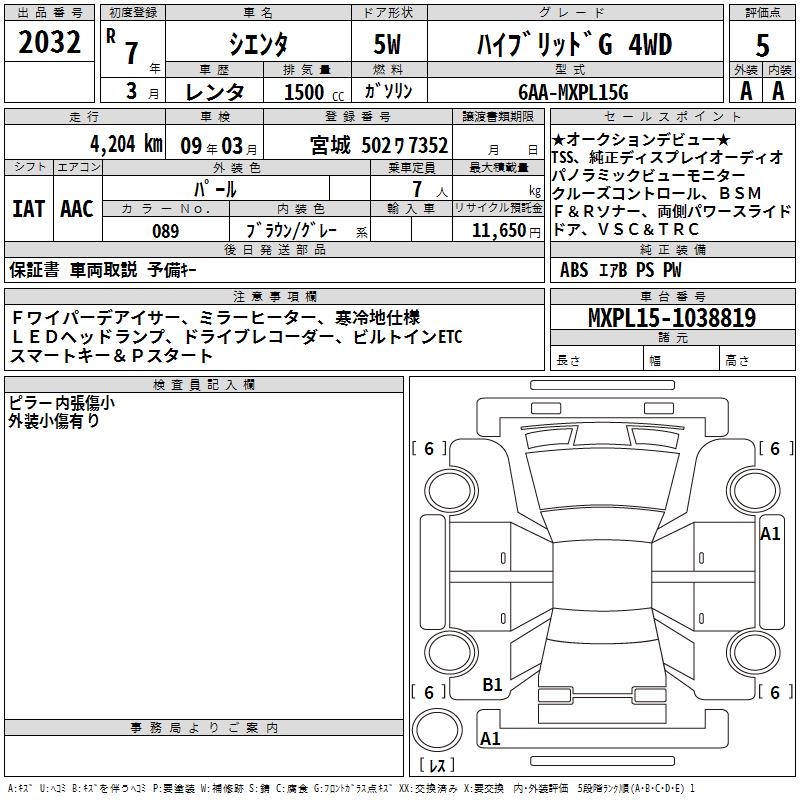 TOYOTA SIENTA - лот 2032
