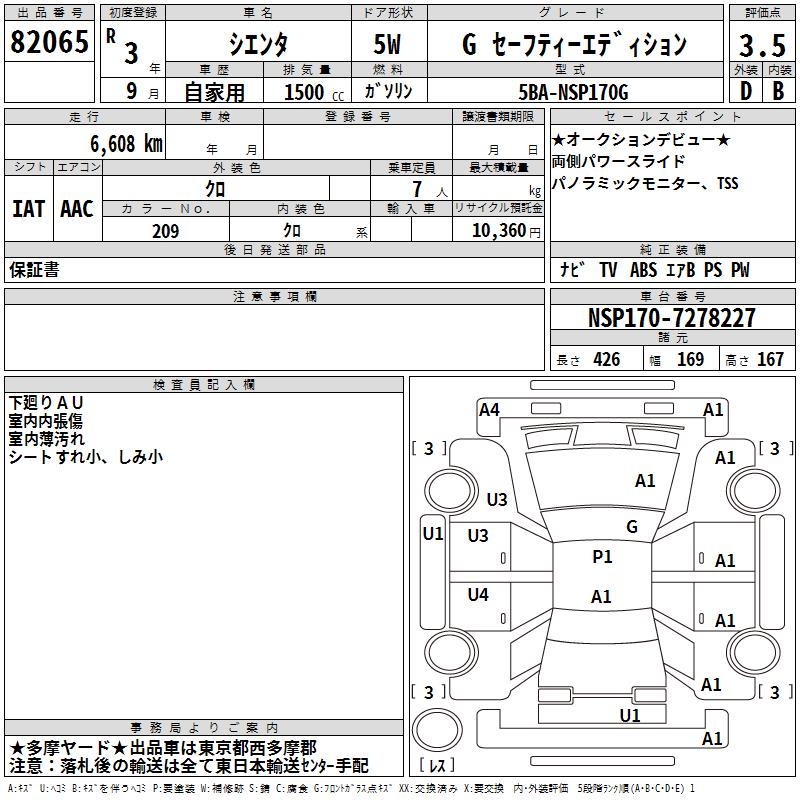 TOYOTA SIENTA - лот 82065