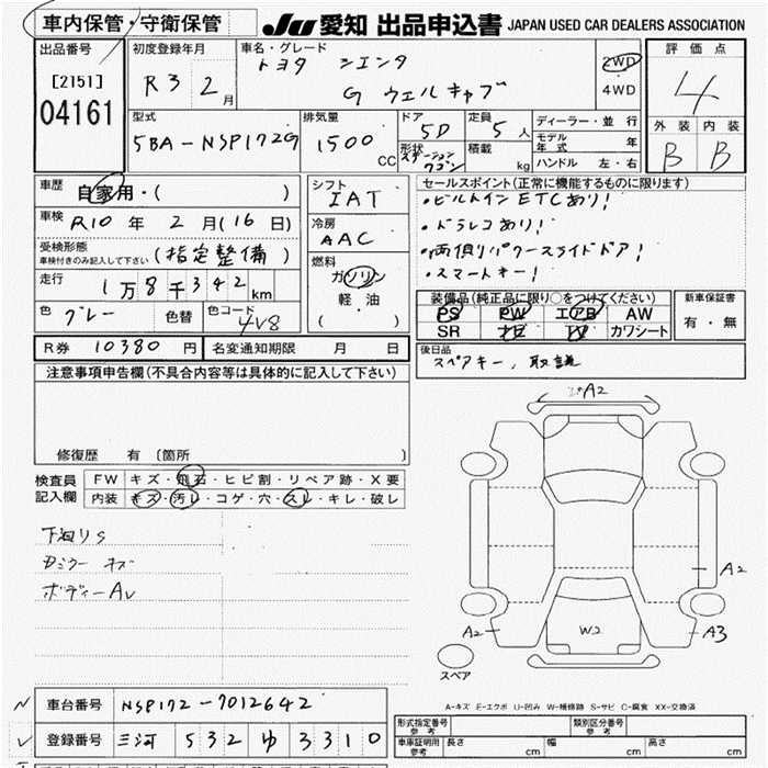 TOYOTA SIENTA - лот 4161